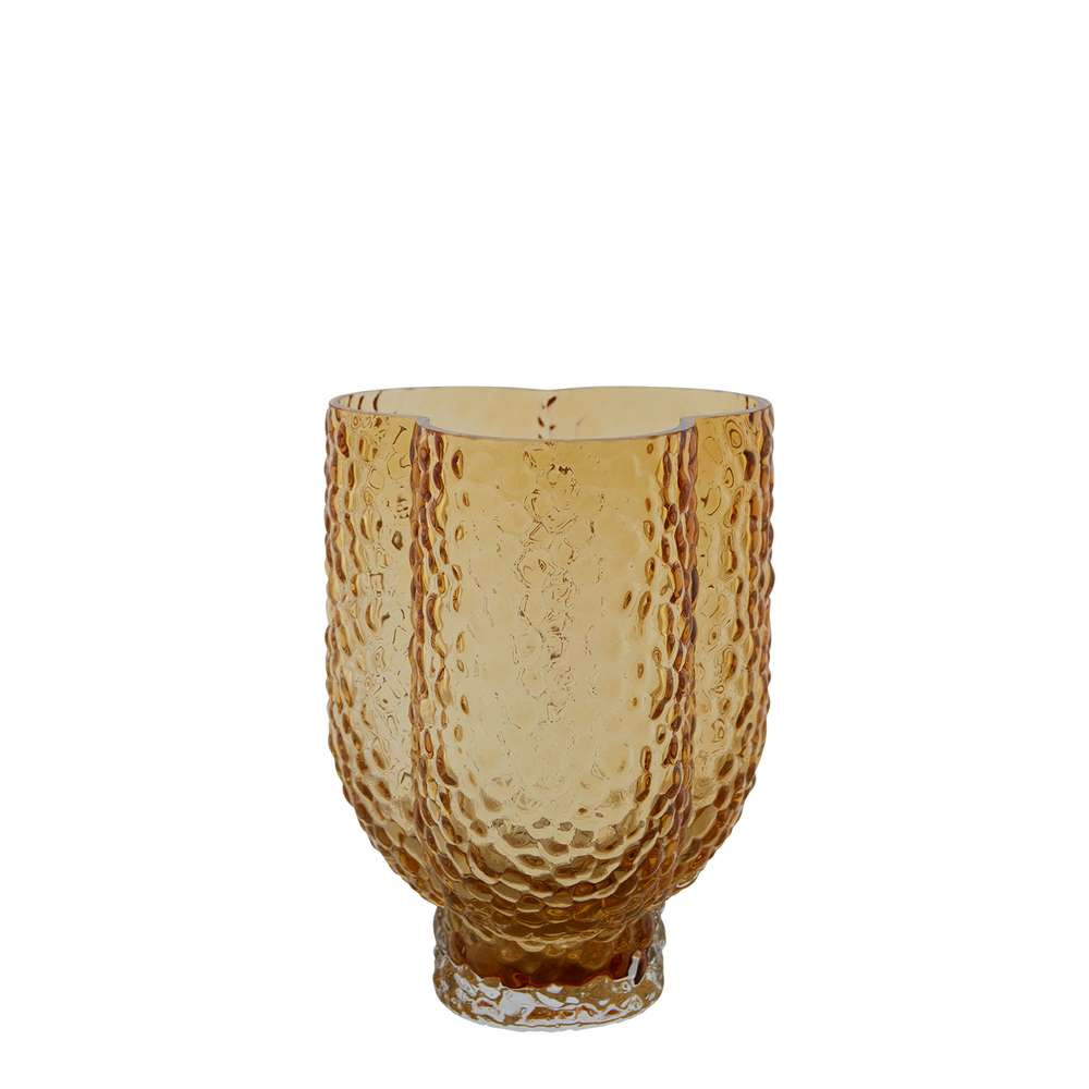 Arura Trio Vase H18 Amber er en ekstraordinær smuk mundblæst glasvase, der udover at være en funktionel vase, også kan sidestilles med andre dekorative kunstgenstande i hjemmet. Dette skyldes, at Trio vasens unikke og excentriske treparts design kan forvandle det æstetiske udtryk i ethvert hjem, og give det en eksklusiv følelse. Vasen har også en levende og boblende overflade, der gør den indbydende og spændende at se og føle på. Trio vasen kommer i to forskellige størrelser, og i to stilrene farver, herunder sort og ravgul, som begge giver rige muligheder for at indrette hjemmet på interessante og elegante måder. Vasens bemærkelsesværdige design giver også uendelige muligheder for, hvad man gerne vil fylde den med, og samtidig hvor den skal vække beundring. Se flere enestående vaser fra AYTM her!