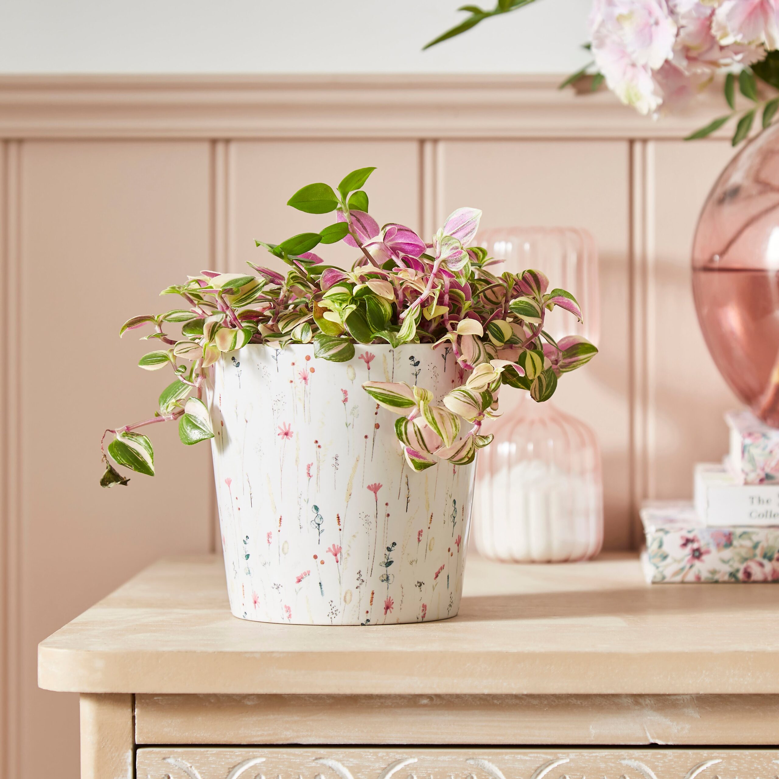 * Plant Pot * Floral Print * 100% Ceramic Material Featuring a white background and splashes of colourful florals, the Dried Flowers Plant Pot is perfect for adding a flair of subtle charm to your home interior. Crafted from ceramic, this stunning piece will be well-suited to any room within your home, creating a soft and relaxing ambience.