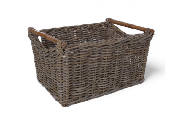 Firkantet kurv i håndflettet kubu naturrattan. Kurven har håndtag af bambus.Â