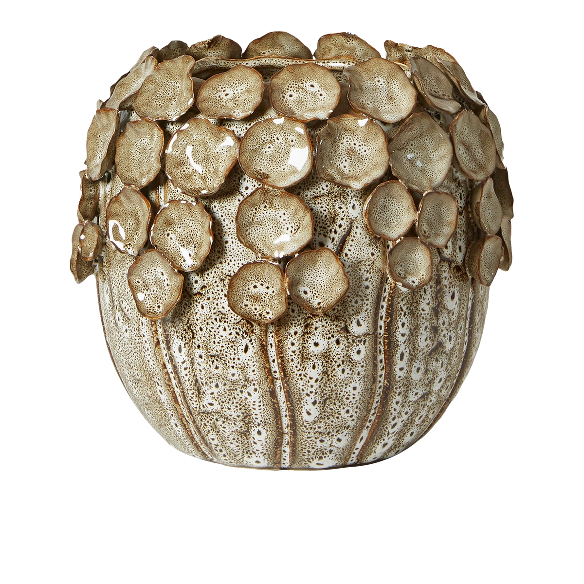 Denne håndlavede skjuler i beige keramik er et ægte blikfang. Med sine blade i relief og en diameter på 21 cm, tilføjer den et naturligt touch til dit hjem.