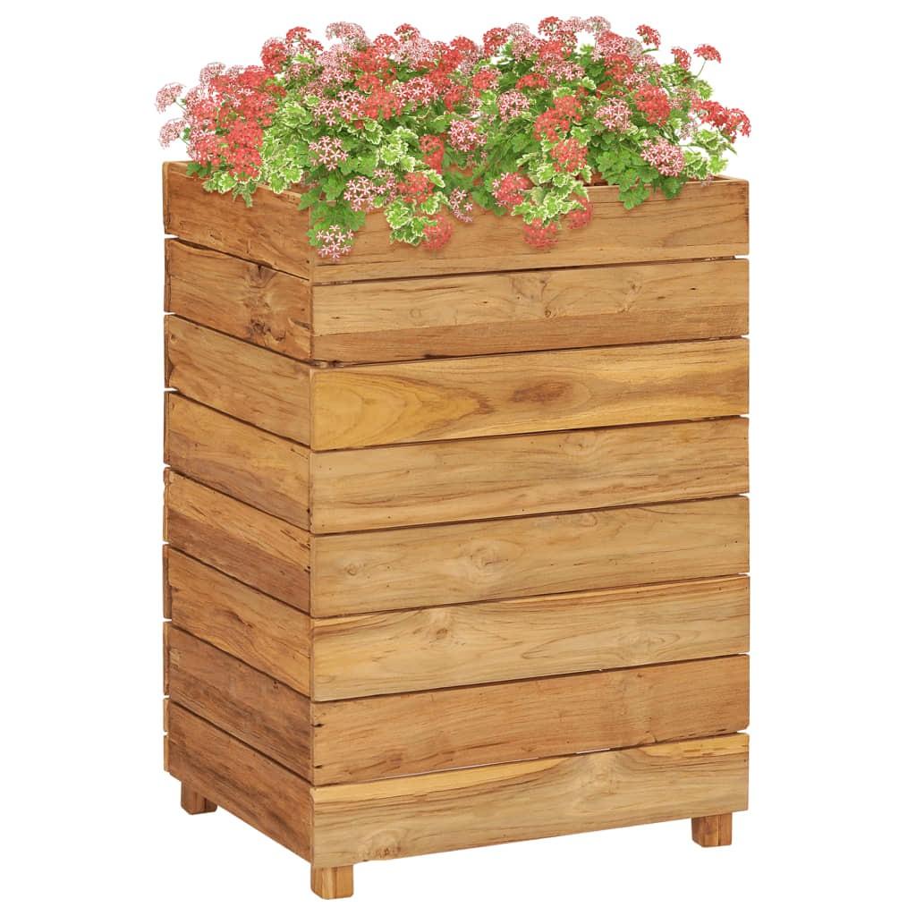 Dette højbed i træ kan rumme et betydeligt antal planter eller blomster og vil være en stilfuld tilføjelse til din stue, have, altan eller terrasse. Denne plantekasse er lavet af massivt teaktræ og er meget robust og holdbar. De smukke åremønstre gør hvert produkt unikt. Fire træben i bunden giver ekstra stabilitet. Bunden af plantekassen er udstyret med et stålstativ, som kan placeres i 2 højder, så du kan vælge den højde, der passer til dine krukker. Plantekassen er den nem at samle. Vigtig bemærkning: Farverne varierer fra møbel til møbel, hvilket gør alle vores produkter unikke; udvælgelse til levering sker tilfældigt.Materiale: Massivt teaktræ, stålMål: 50 x 40 x 72 cm (L x B x H)Med stålstativ (2 højder)Stativets højde fra jorden: 10 cm og 44 cmMontering/samling påkrævet: Ja
