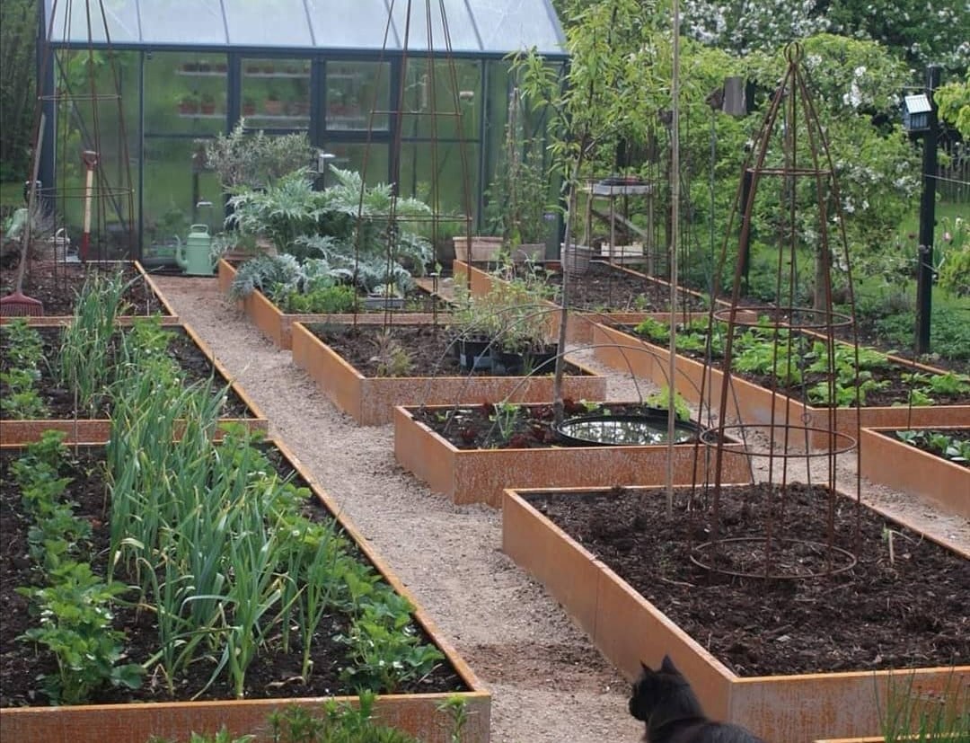 Alle størrelser har en højde på 25 cm. Højbedene er lavet i jern, med en godstykkelse på 1,25 mm, der ruster op til den gyldne farve. Desuden er der en 3 cm bred kant, som afslutning på pladerne. Højbedene er dansk produceret, og kvaliteten er i top.