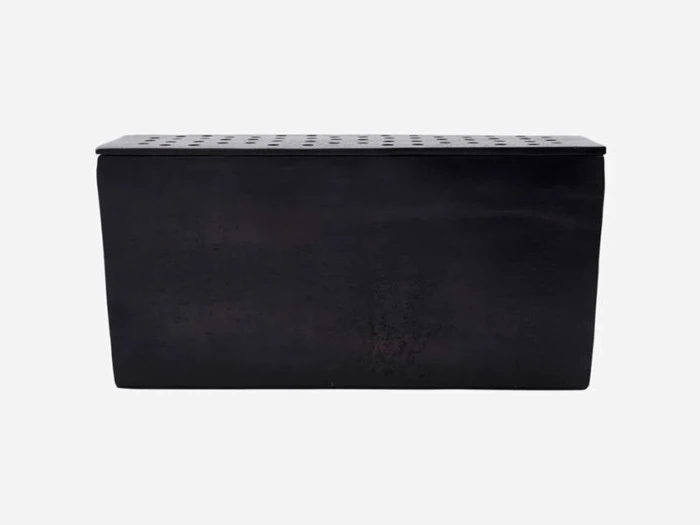 En firkantet vase? Med huller til hver stilk? Naturligvis. House Doctor har designet Flow-vasen til at skille sig ud i dit hjem. Vasen er lavet i aluminium, og den mørke farve giver et nedtonet look, mens hullerne til stilkene og den firkantede form tager vasen til det næste niveau. I stedet for at præsentere dine blomster sammen i en buket, kan du sætte fokus på hver enkelt blomst med Flow. Fjern blot låget, tilsæt vand, placér stilkene og find det perfekte sted i dit hjem. Måske i vindueskarmen eller på dit sidebord?