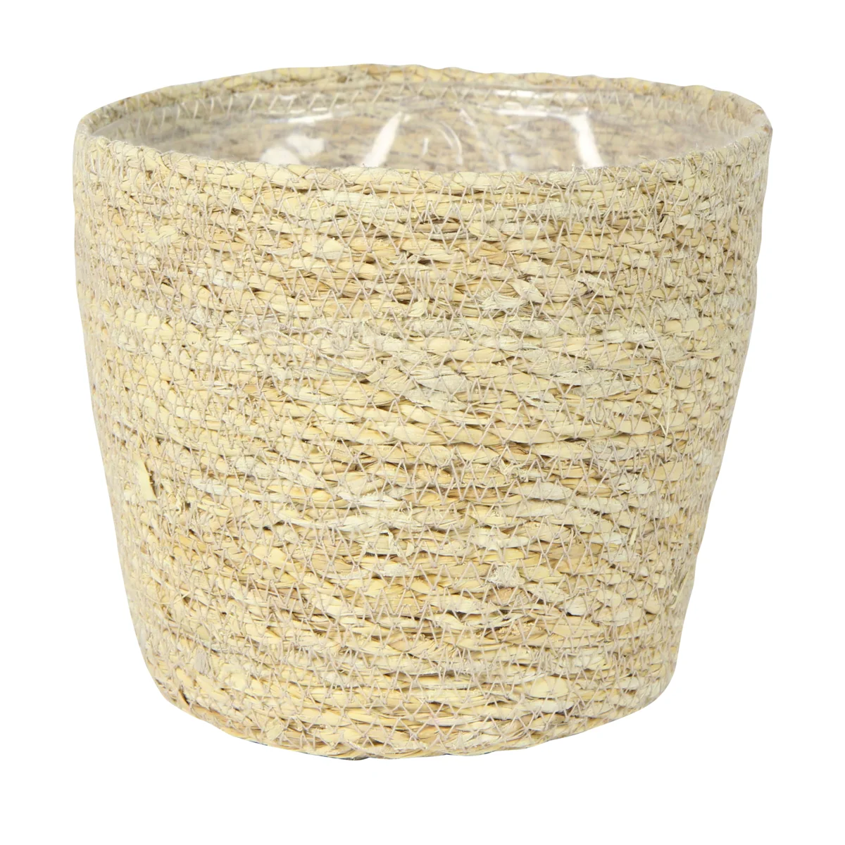Denne charmerende kurv er perfekt til opbevaring i hjemmet. Lavet af naturligt søgræs, den har en diameter på 18 cm og en højde på 16 cm.