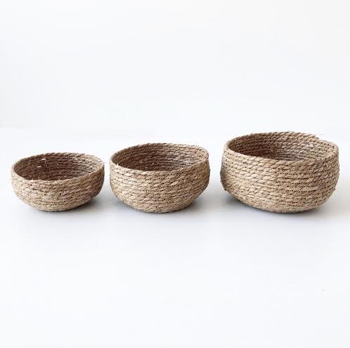 Materiale: HampMål: Stor Ø25xH13 – Mellem Ø22xH11 – Lille Ø19xH9Ind- Udendørsbrug: Indendørs eller under halvtagFremstillet: Denne vare er håndflettet.Varenummer: 133045