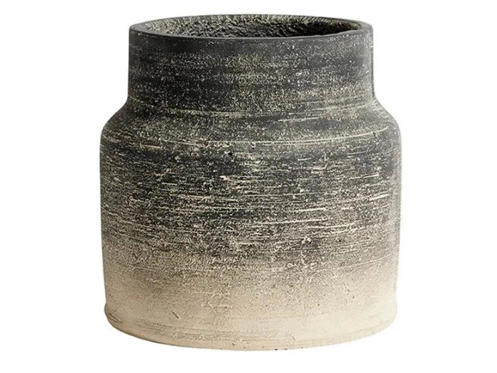 Kanji krukken fra MUUBS vil med sin smukke grå overflade, passe flot ind i haven. Dens farve matcher naturens egne farver, og gør den egnet til farverige planter og blomster. Stil blomsterkrukken sammen med den store Kanji krukke og fyld dem med forskellige udendørs planterMÅL: